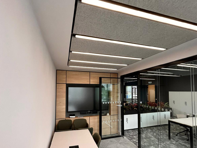 Class A Wrapped Ceiling Rafts are designed to achieve the highest acoustic performance without sacrificing on style. The rafts themselves are design to absorb sound, in terms, enabling ultimate acoustic comfort, preventing echo and reverberation, and ensuring enhanced speech intelligibility.